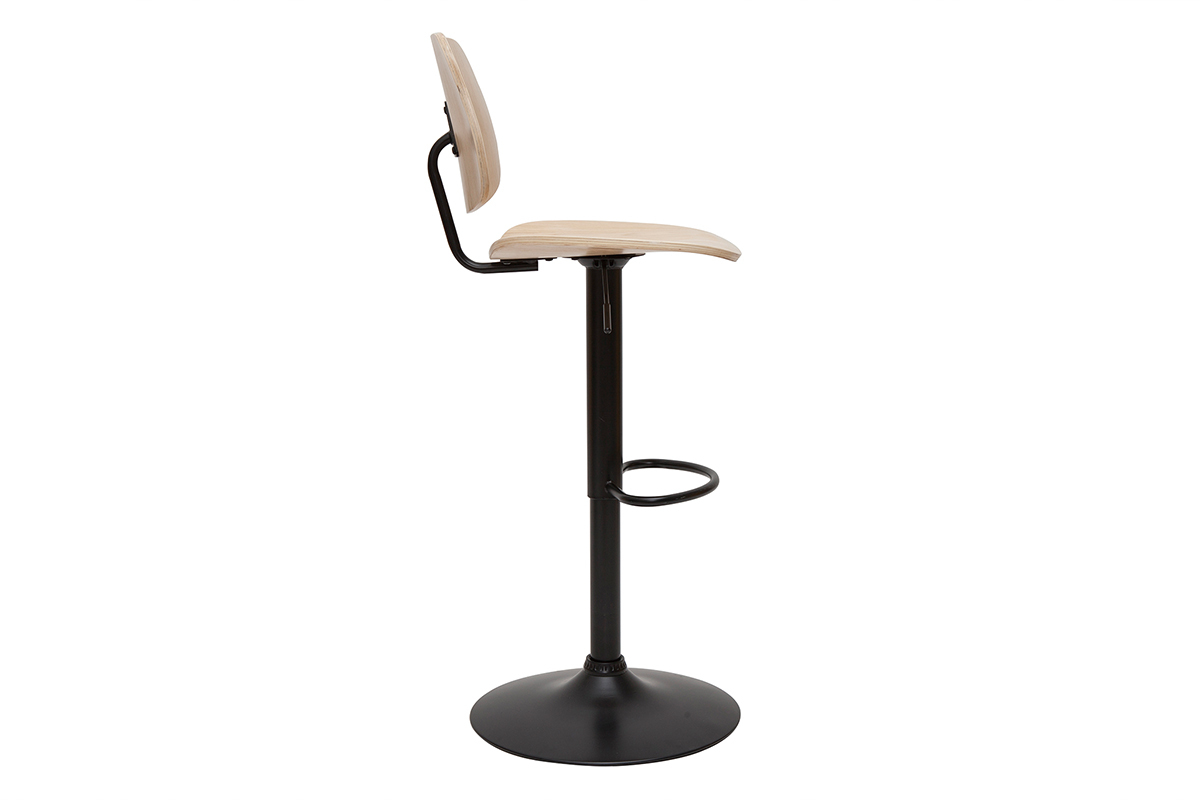 Mit seiner Sitzfläche und Rückenlehne aus hellem Holz und den abgerundeten Ecken erinnert er dezent an Möbelstücke aus den 60er Jahren. Er hat seinen eigenen Stil und thront auf einem schwarzen Metallfuß, welcher den Retro-Effekt der Sitzfläche perfekt ausgleicht. Dieses ausgewogene Design sorgt für einen Barhocker mit einem einzigartigen und trendigen Look!