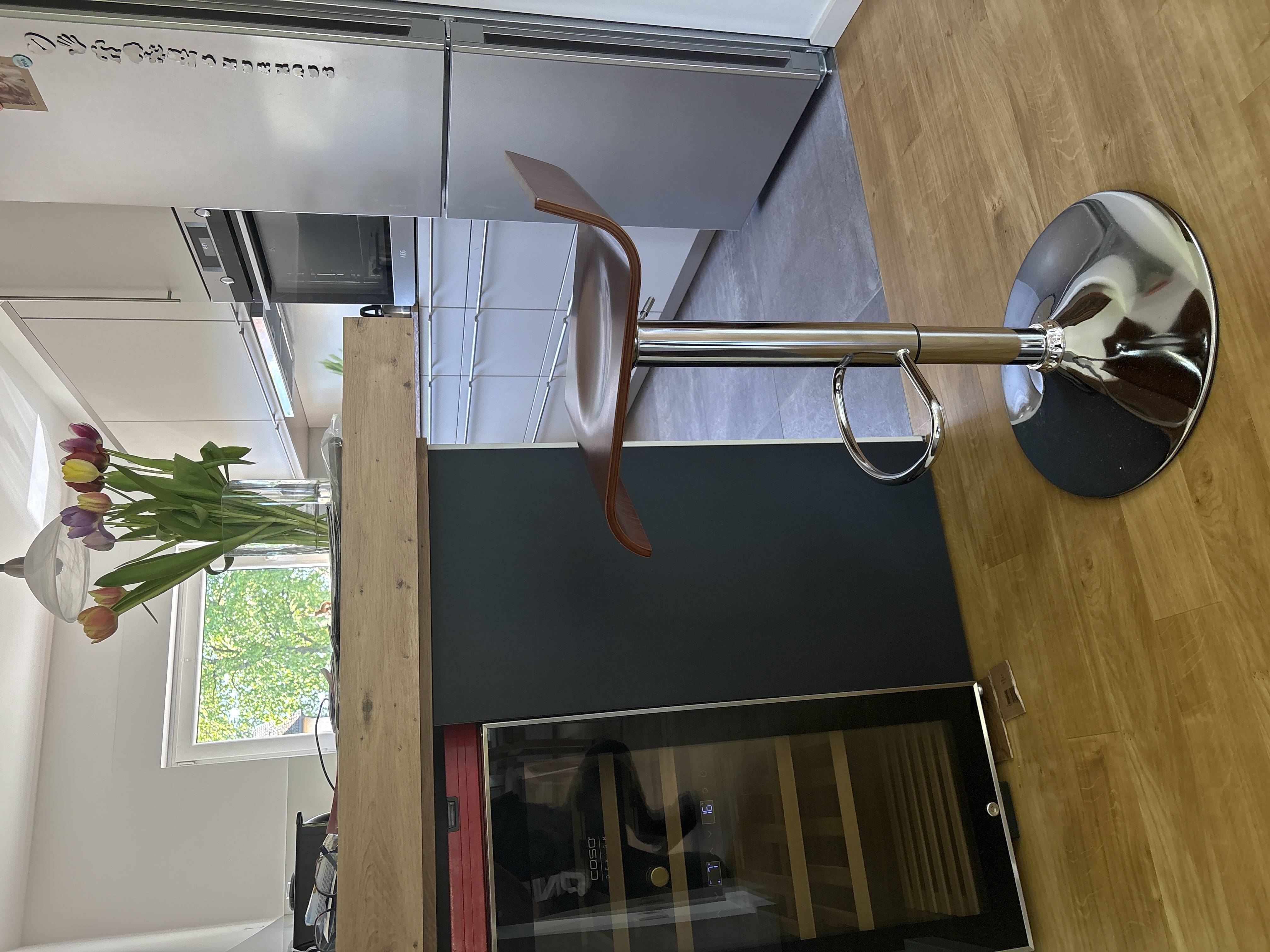Auch für große Familien, WGs und viele Freunde geeignet! Groß und Klein können bequem an der Kücheninsel oder dem Bartisch Platz nehmen, indem sie die Sitzhöhe mit dem Hebel unter dem Sitz auf die richtige Höhe anpassen. So lässt sich die Sitzhöhe im Handumdrehen von 58 auf 80 cm vergrößern.