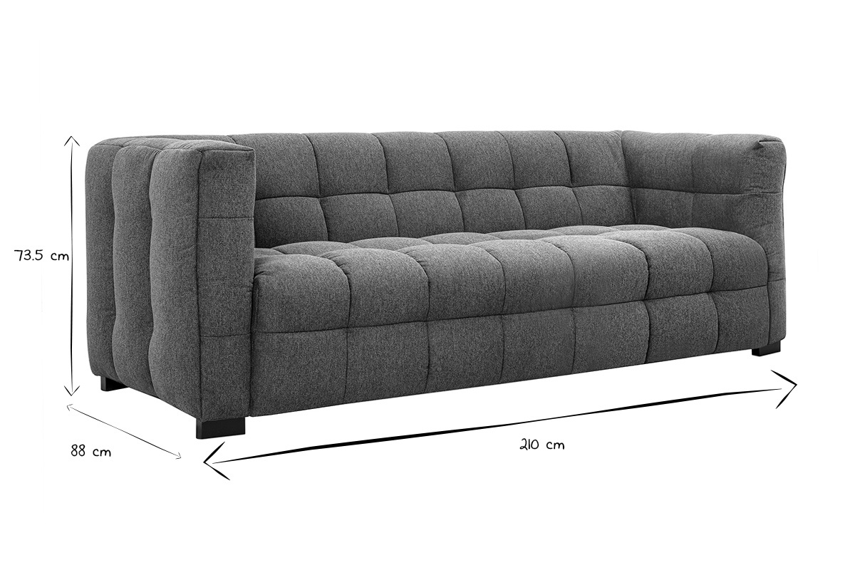 Weil Momente des Friedens oder gesellige Zusammenkünfte noch mehr geschätzt werden, wenn man bequem sitzt, lässt CORTO beim Komfort nichts dem Zufall über! Gleichzeitig schick und gemütlich, perfekt für gemütliche Momente, bietet dieses große moderne 3-Sitzer-Sofa (Maße B210 x T88 x H73,5 cm) seinen Gästen nebelförmige Formen und ein einhüllendes Polster. Rücken- und Sitzpolster werden von einer angenehmen Schaumstofffüllung gestützt und mit einem Bezug aus strukturiertem Samteffektstoff geziert. Ein Gewebe, das sowohl optisch als auch haptisch angenehm ist und sich perfekt den wohlgeformten Volumen dieses dunkelblauen 3-Sitzer-Sofas aus blauem Stoff anpasst.