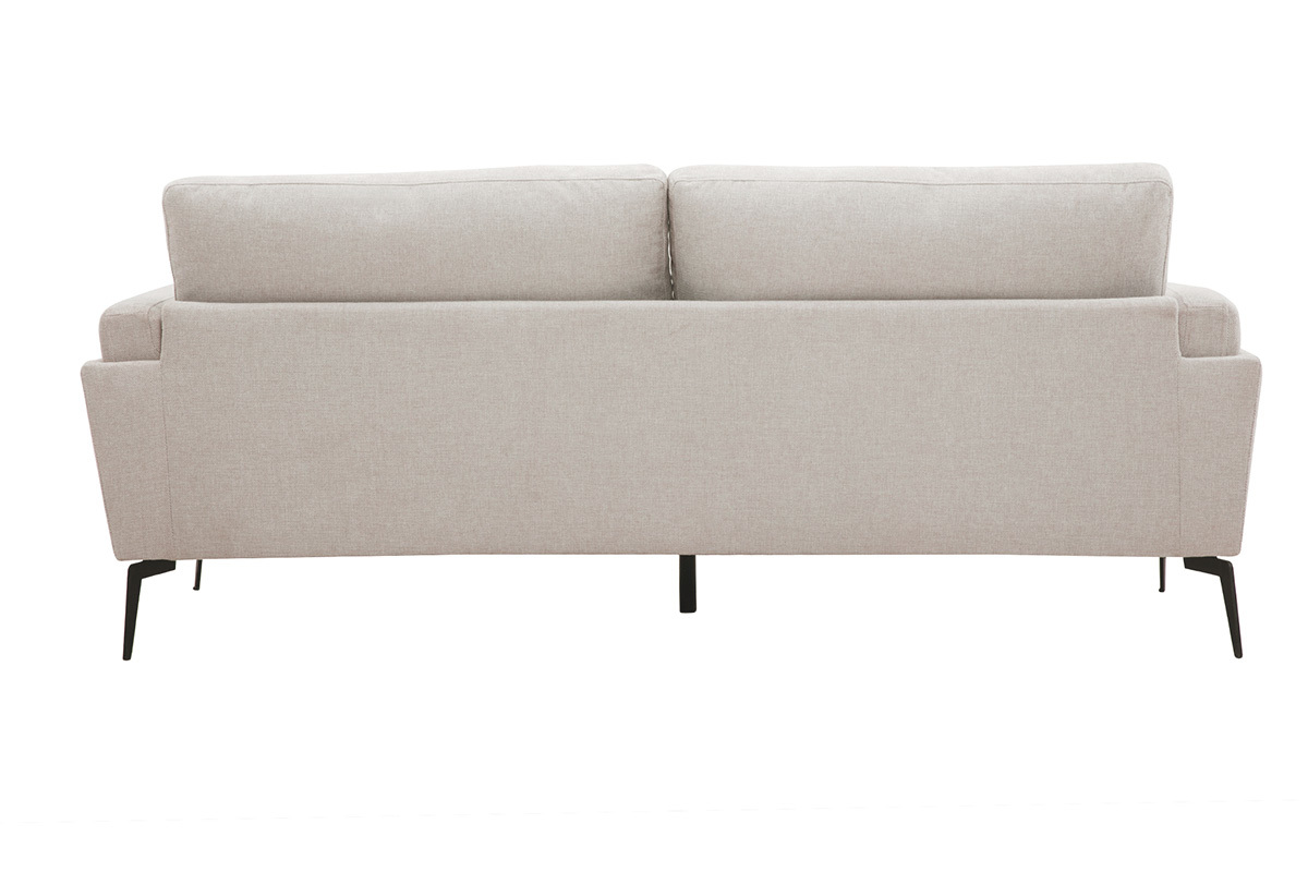 Der hübsche Stoff mit strukturiertem Samteffekt (100 % Polyester) des Sofas MOSCO ist in Beige gehalten. Diese helle und natürlich warme Farbe lässt sich leicht mit allen Einrichtungsstilen kombinieren. Seine vier hohen Füße aus schwarzem Metall (H17 cm) verleihen dem Ganzen einen modernen und schicken Touch.