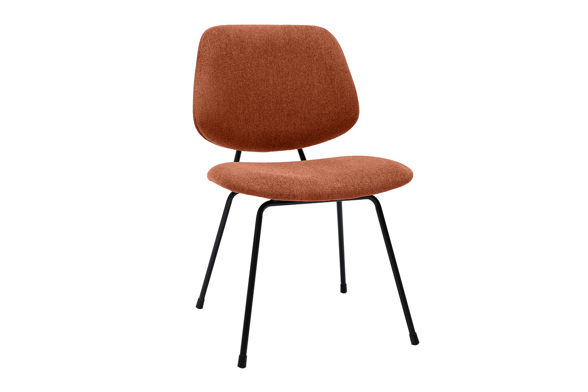 Minimalismus ist ein Schlüsselprinzip moderner Möbel, und dies wurde bei diesem Design gekonnt umgesetzt. So wird Minimalismus zum Trend! In der Tat verdanken diese Esszimmerstühlen ihre trendige Ausstrahlung dem weichen Stoff mit Samteffekt in Terracotta und dem luftigen Gestell aus schwarzem Metall. Diese Materialien sind perfekt aufeinander abgestimmt und bringen die zarten Linien dieser modernen Stühle perfekt zur Geltung.