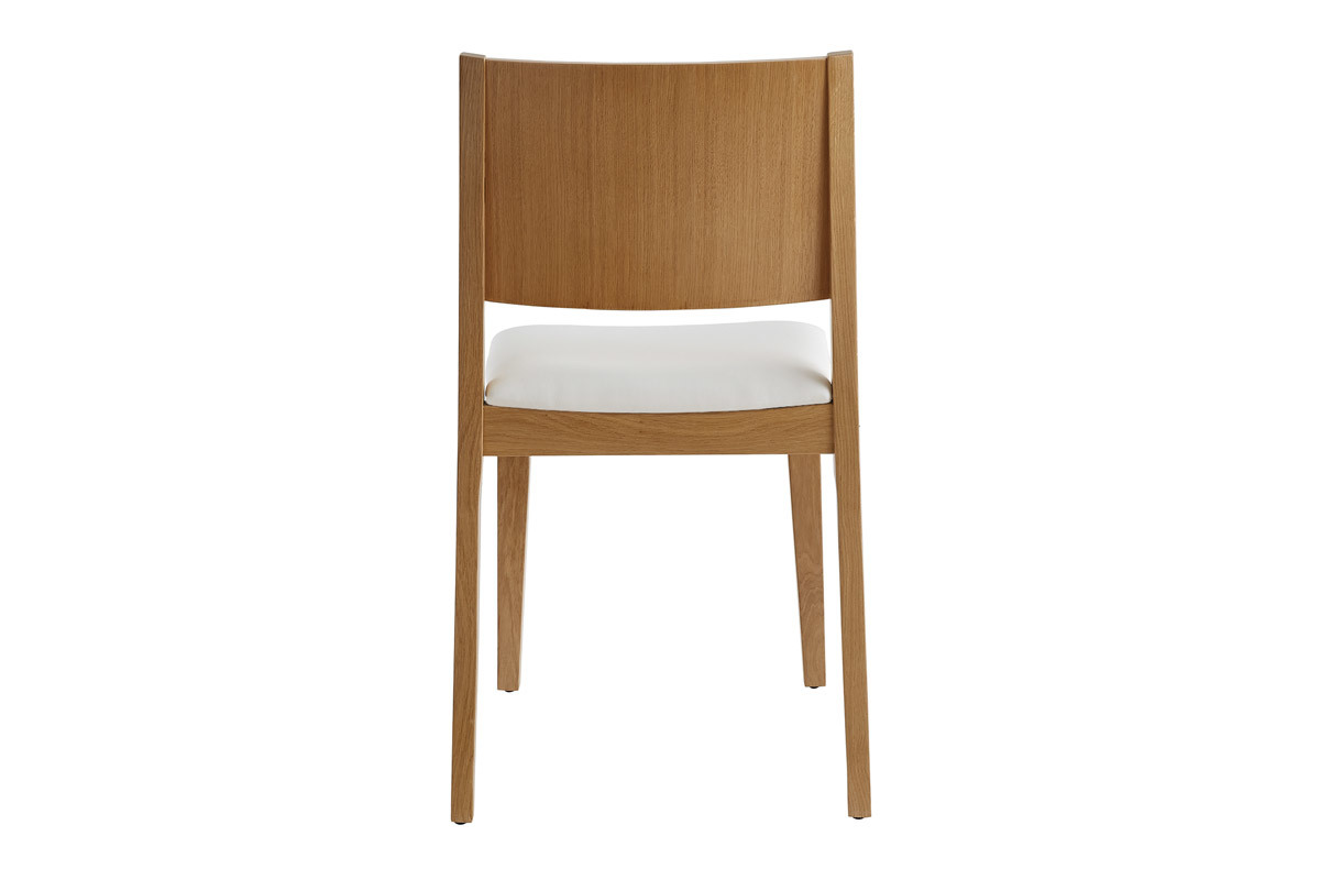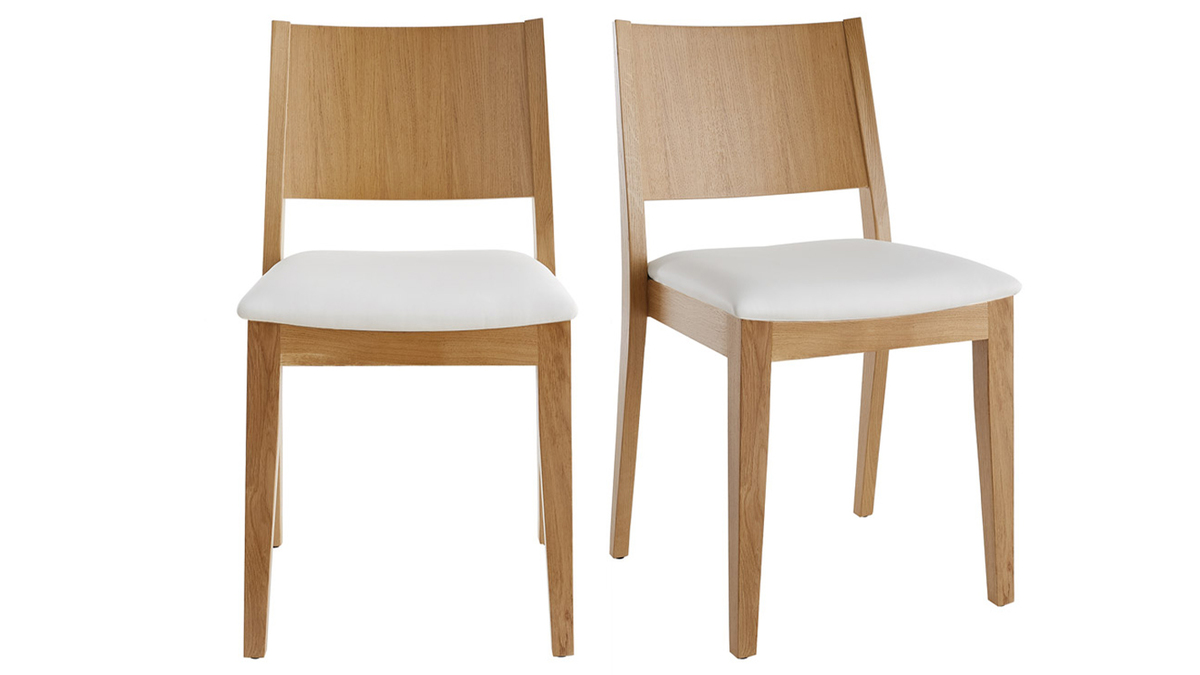 Mit ihren ausgewogenen Linien nehmen sie die Herausforderung an, Design und Komfort zu vereinen. Sie bestehen aus einem robusten Gestell aus massiver Eiche, einer breiten, gewölbten Rückenlehne, die sich der Form des Rückens anpasst, und einer angenehm gepolsterten Sitzfläche (35 kg/m³). Diese modernen Stühle aus Holz sind perfekt, um die geselligen Momente mit der Familie oder mit Freunden bei einem guten Essen zu genießen!