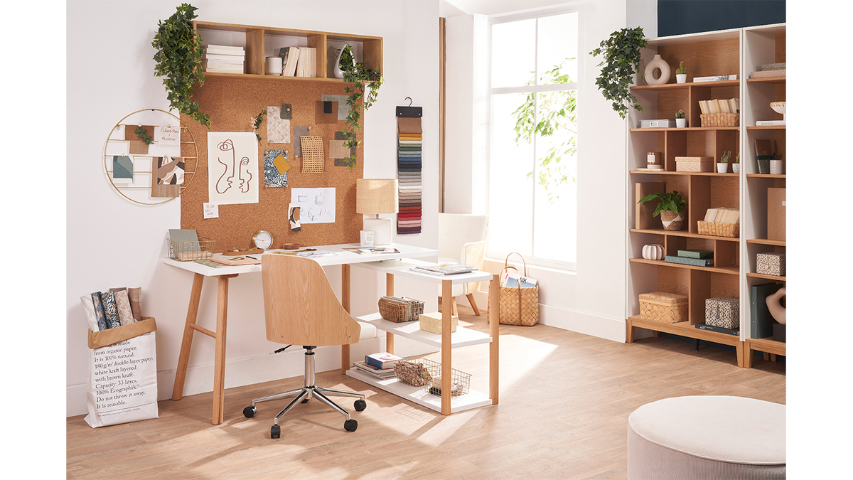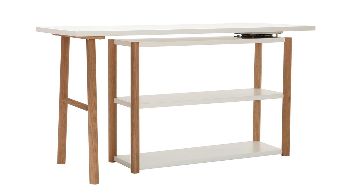 Mit dem Schreibtisch skandinavisches Design Weiß und Eiche GILDA können Sie Arbeit, Aufbewahrung und Stil mühelos vereinen. Dieser Dreh-Schreibtisch skandinavisches Design Weiß und Eiche GILDA wurde von unseren Designern Maureen und Maxime entworfen und ist unheimlich praktisch. Eine große matt weiß lackiere Tischplatte ermöglicht es Ihnen, unter den besten Umständen zu arbeiten: 108,5 x 60 cm. Des Weiteren gibt es eine untere Ablage mit 3 Regalbrettern, die all Ihren Akten, Dokumenten und Arbeitsutensilien Platz bieten. Als verbindendes Element ermöglicht eine Drehachse es, die Ablage in die Position zu bringen, die Sie wünschen, waagerecht oder senkrecht zu Tischplatte, und das links wie rechts. Um den Platz optimal zu nutzen, kann die Ablage sogar unter dem Schreibtisch untergebracht werden, wenn Sie diese nicht mehr brauchen. Um den Dreh-Schreibtisch skandinavisches Design Weiß und Eiche GILDA abzurunden, wurde er in dem besonders gefragten skandinavischen Stil gestaltet. Die Beine sind aus massiver Eiche, was nicht nur ein hochwertiges Material ist, sondern für Gemütlichkeit steht. Die Platten sind aus matt weiß lackierter MDF, um einen modernen Look zu schaffen, der in jede Einrichtung passt. Der Schreibtisch GILDA wird zweifelsohne Ihr bester Freund im Alltag. Für eine zusätzliche Ablage in gleicher Optik können Sie Ihren Schreibtisch mit dem Regal GILDA ergänzen.
