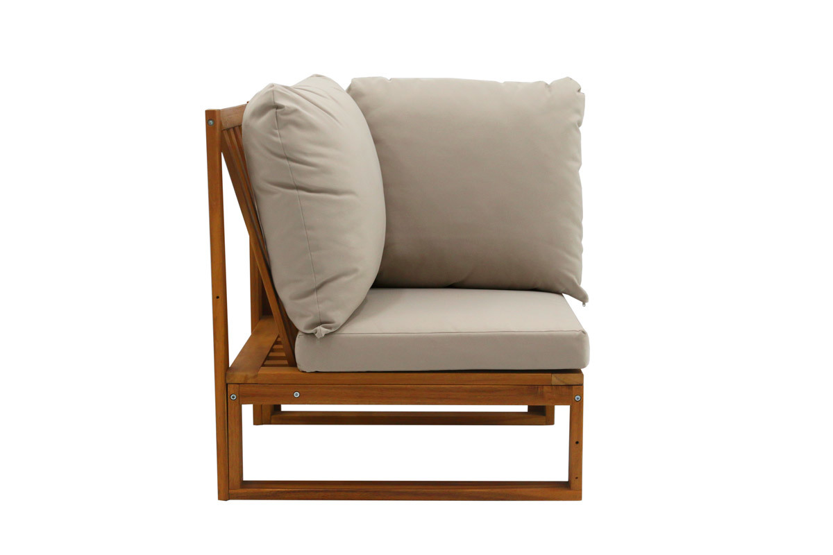 Diese Eck-Gartengarnitur in Taupe und Massivholz zeichnet sich sowohl durch ihre Ästhetik als auch durch ihre Robustheit aus!