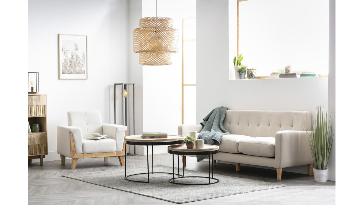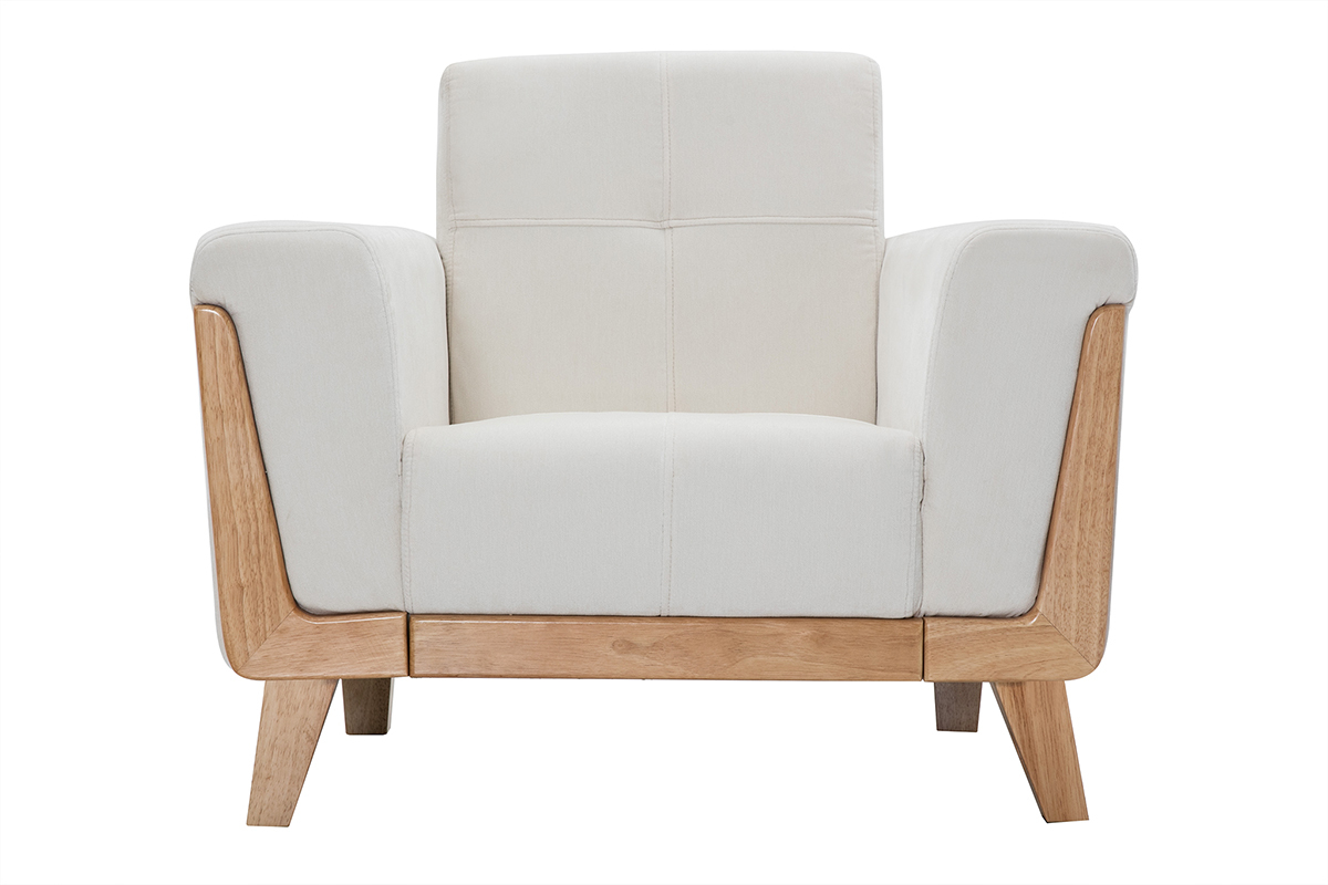 Suchen Sie einen eleganten und komfortablen Sessel? Dieser Sessel FJORD wird Ihren Wunsch erfüllen. Der Sessel FJORD stellt eine echte Einladung zum Entspannen dar. Das Gestell aus Holz geht bis zu den Armlehnen hoch. Der Bezug aus altweißem Polyester-Stoff lehnt sich perfekt an den nordischen Stil an. Der Sessel eignet sich ideal zum Lesen und wird schnell zu Ihrem Freund im Alltag. Der Komfort, den der einladende und geräumige Sitz bietet, wird Sie zweifelsohne überzeugen. Um einen ruhigen und harmonischen Wohnbereich zu erschaffen, können Sie diesen Sessel mit dem Sofa für 2 Plätze oder auch dem für 3 Plätze kombinieren.