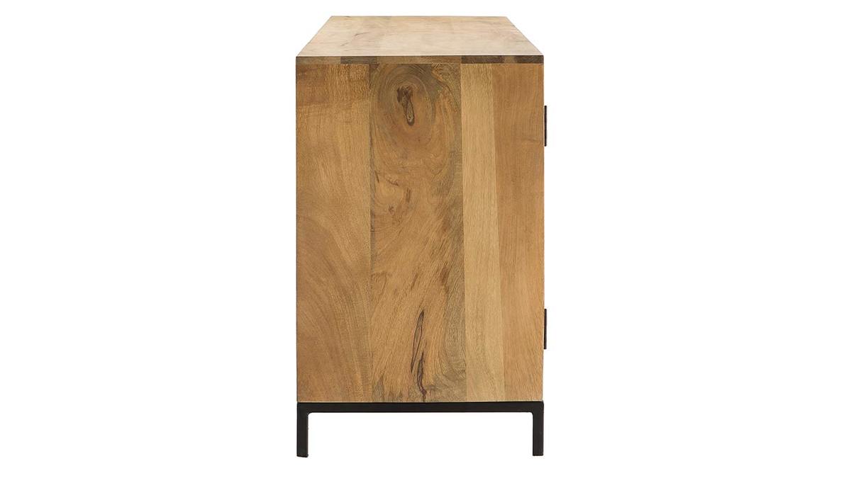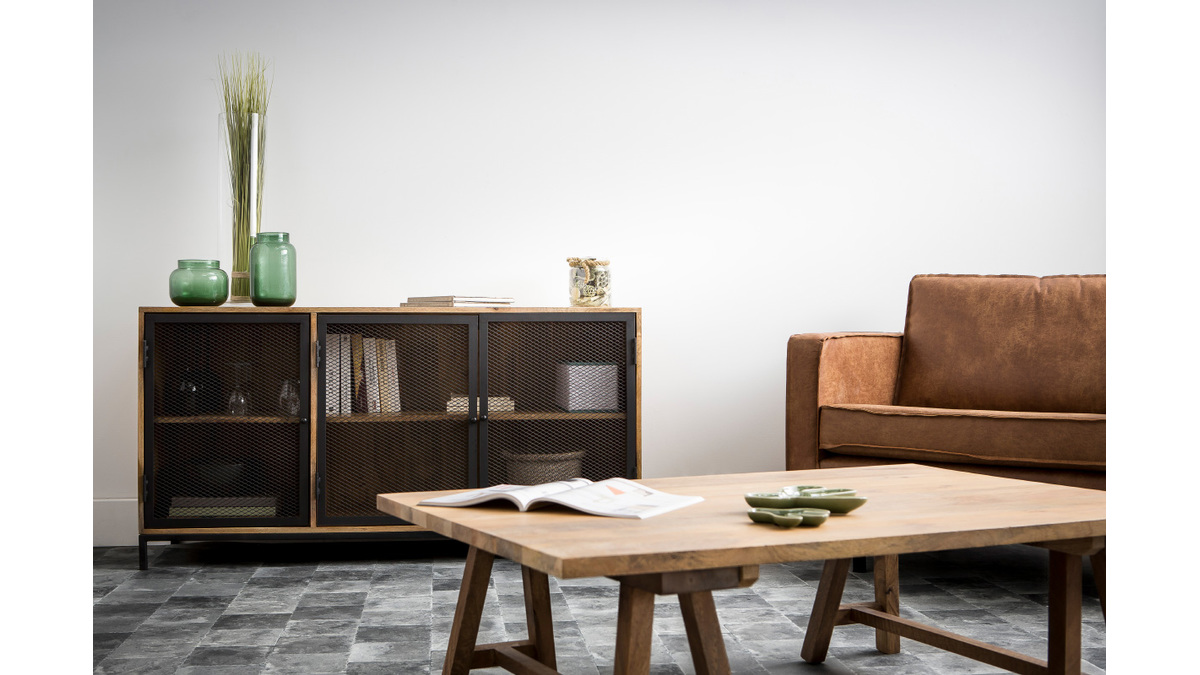 Ein gutes Händchen für Design erkennt man an einer harmonischen Kombination aus Trend und Besonderheit. Das Sideboard RACK ist das perfekte Beispiel für ein Möbel im industriellen Stil einzigartig verarbeitet ohne schwer zu wirken. Die Materialen aus denen das Sideboard besteht sind eine feine Mischung ausExotik und dem industriellen Stil. Das Mangoholz des Möbelstücks RACK ist wegen seiner warmen Farben und seiner charakteristischen Streifen sehr beliebt. Die elegante Holzstruktur kombiniert mit Füßen und Türen aus Metall sind an den Factory-Look angelehnt. Was dieses Sideboard zu etwas besonderem macht, ist die Verarbeitung der Materialien, insbesondere das perforierte Metall der Türen mit denen sich die Fächer schließen lassen, um dem HolzmöbelLeichtigkeit verleihen. Das Sideboard RACK passt sowohl ins Wohnzimmer, als auch in den Eingangsbereich oder in die Küche. Dank der verschieden großen Fächer, lässt sich dort alles leicht verstauen. Für ein aufgeräumtes und schön eingerichtetes Zimmer, kombinieren Sie das Sideboard mit demRegal im industriellen Stil ATELIER und demWandregal YPSTER. Für eine trendige Inneneinrichtung im industriellen Stil, entdecken Sie das gesamte Sortiment der Möbel RACK. Wird aufgebaut geliefert.