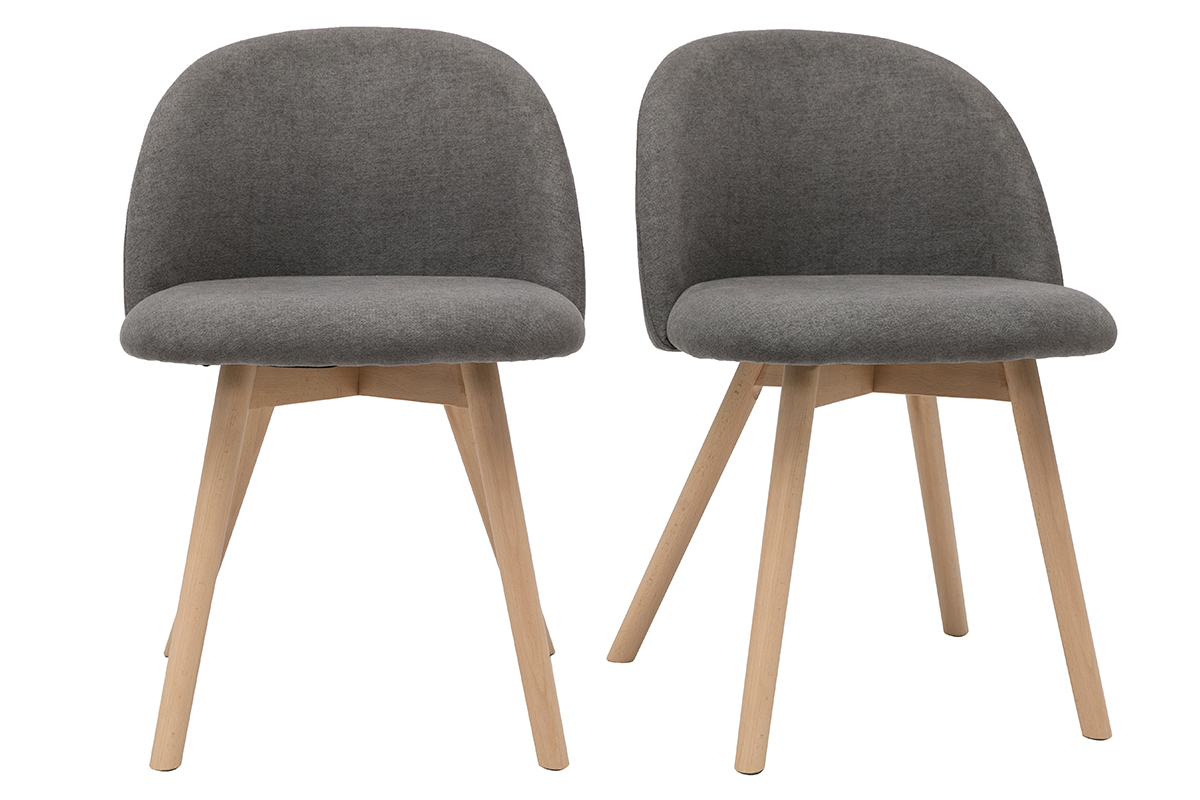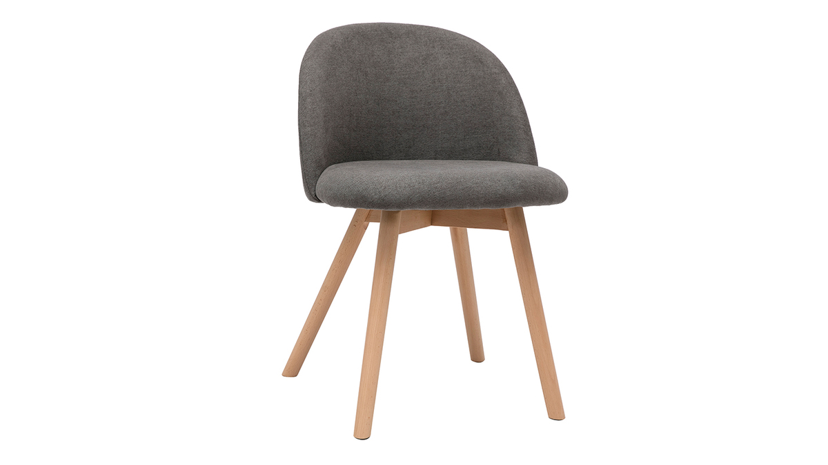 Grauer Stoff mit Samteffekt, Beine aus massiver Buche, rundliche Linien: Die CELESTE Stühle spiegeln alles wider, was den Charme des skandinavischen Stils ausmacht.