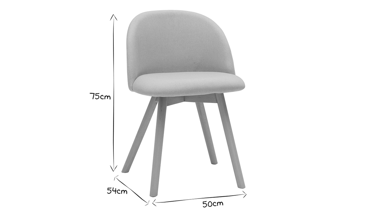 Naturfarbener Stoff, Beine ausmassiver Buche, rundliche Linien: Die CELESTE Stühle spiegeln alles wider, was den Charme des skandinavischen Stils ausmacht.