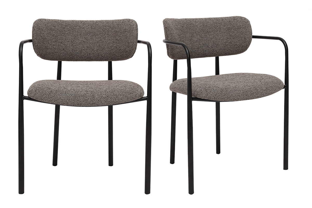 Diese Sitzmöbel zeichnen sich durch ihre schlanke Silhouette und ihre modernen Linien aus. Der schwarze Metallrahmen verleiht einen industriellen Touch, während Sitzfläche und Rückenlehne mit strukturiertem Samtstoff einen Hauch von Luxus und Weichheit hinzufügen. Die warme und aktuelle Taupe-Farbe fügt sich harmonisch in eine Vielzahl von Einrichtungsstilen ein, von zeitgenössisch über vintage bis hin zu Boho oder skandinavisch.