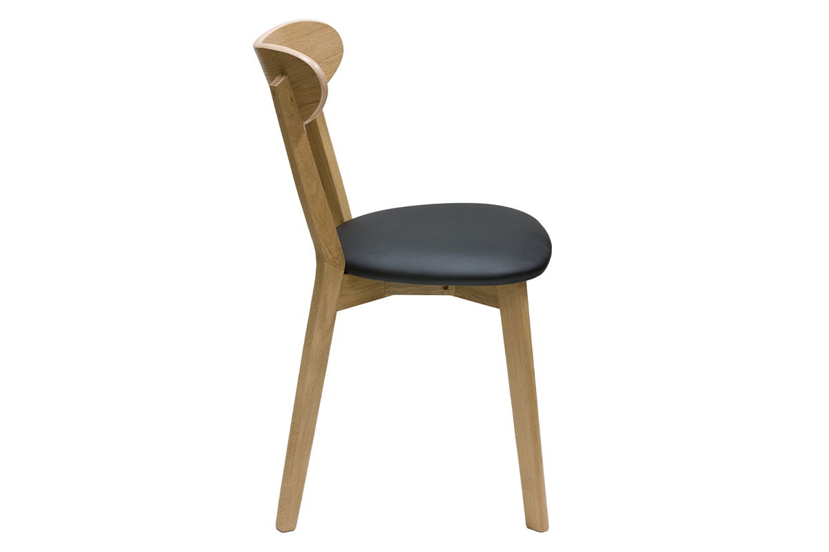 Hergestellt aus Furnierplatte im Eichen-Look, so bieten diese platzsparenden Stühle mit den Maßen L44 x T56 x H82 cm sowohl Leichtigkeit als auch Strapazierfähigkeit. Sie lassen sich im Handumdrehen vom Wohnzimmer auf den Balkon bringen, für die Pflege genügt ein feuchtes Tuch. Die gewölbte Rückenlehne und die gepolsterte Sitzfläche (Schaumdichte 35 Kg/m3) garantieren den langlebigen Komfort im Alltag. Die Sitzfläche im schwarzem Stoffbezug (100 % Polyurethan) harmoniert wunderbar mit der hellen Holznote. Die auf dem Eichenfurnier aufgetragene durchsichtige Lackierung nährt und schützt das Holz.
