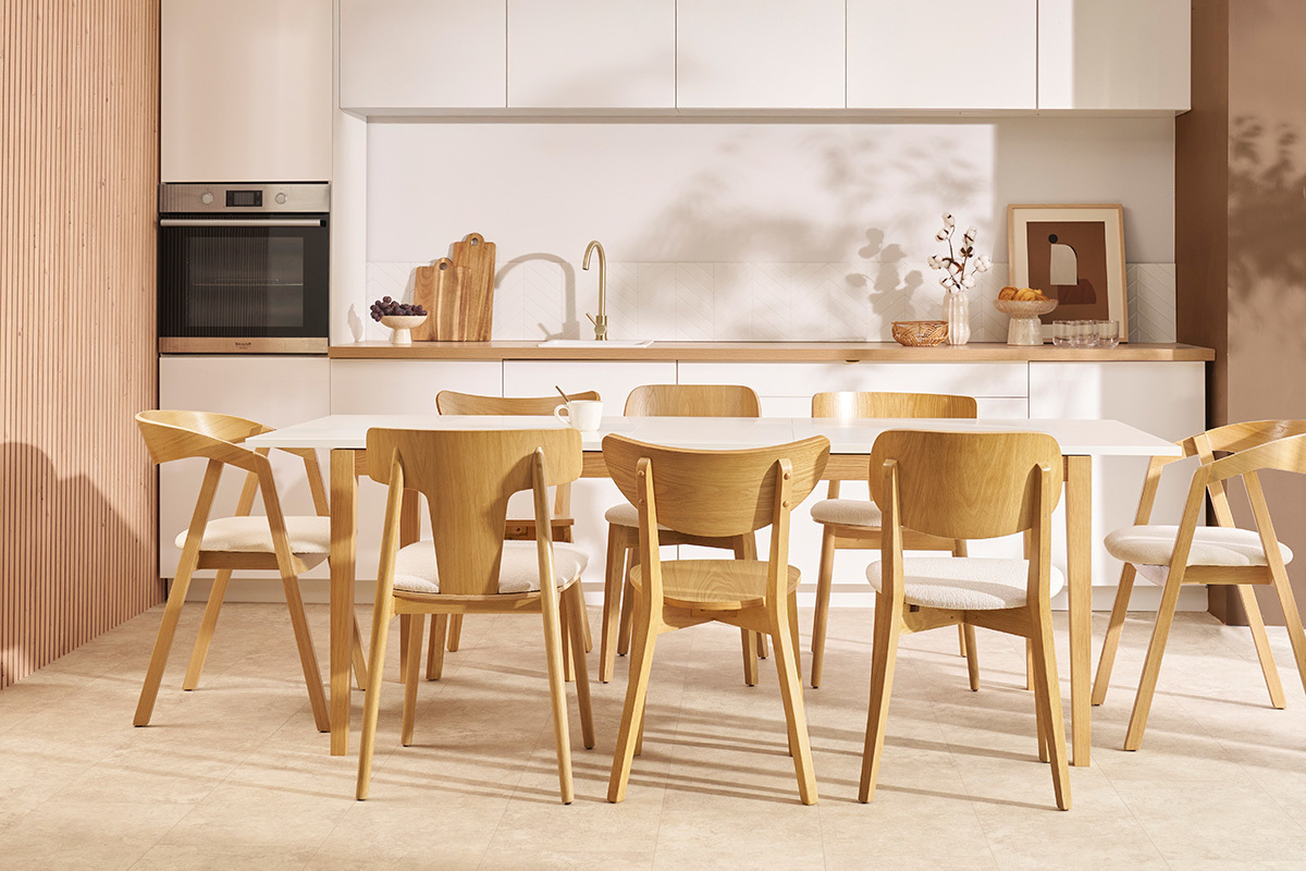 Diese pflegeleichten und robusten Stühle reinigen sie ganz einfach mithilfe eines leicht befeuchteten Tuchs. Die gesamte Struktur aus Eichenfurnier ist mit einem klaren Lack versehen, der das Holz nährt und schützt.
