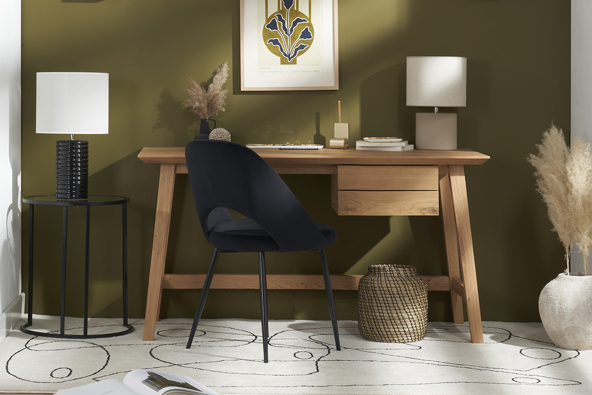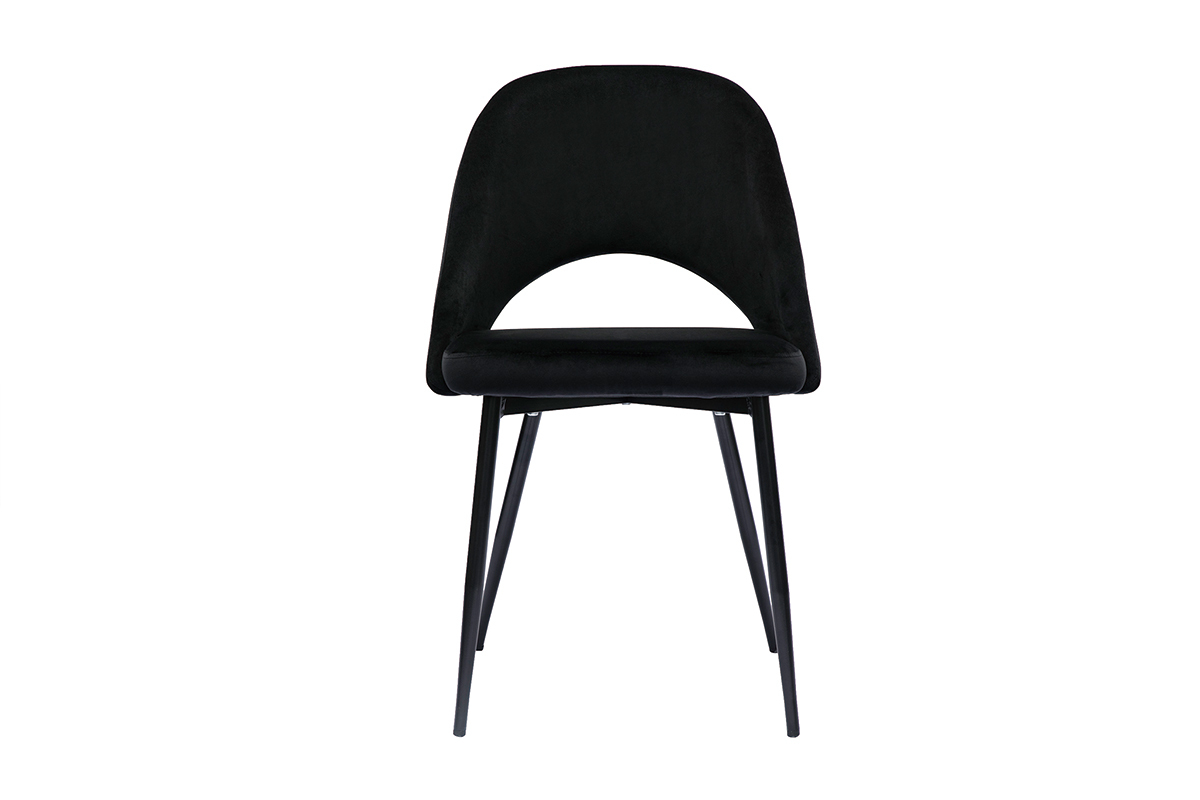 Diese Sitzgelegenheiten mit ihrem subtilen Retro-Charme stehen für Geselligkeit und Gemeinsamkeit. Der hübsche Samtbezug (100 % Polyester) in Schwarz steht für Eleganz und Minimalismus. Die spindelförmigen Beine aus schwarzem Metall verleihen der Silhouette Leichtigkeit und passen zu allen Stilen von Esstischen.